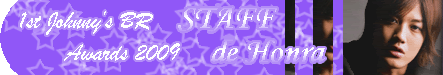 ESSE ANO, EM COMEMORAÇÃO AO PRIMEIRO ANO DO MEU FÓRUM QUERIDO, O JOHNNY'S BRASIL, NÓS REALIZAMOS O PRIMEIRO JA(JOHNNY'S AWARDS) DE 2009. TODOS OS MEMBROS, ATIVOS E NÃO ATIVOS ESTAVAM PARTICIPANDO. MUITO OBRIGADA MINNA, POR TEREM VOTADO EM MIM EM TANTAS CATEGORIAS~ *--*/ A SEGUIR~ OS MEUS PRÊMIOS QUE NÃO COUBE TUDO NA MINHA SIG~ ;_;